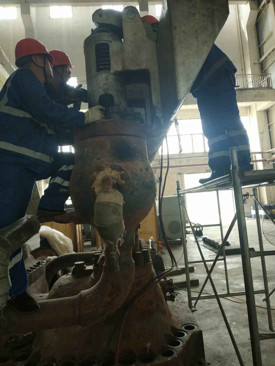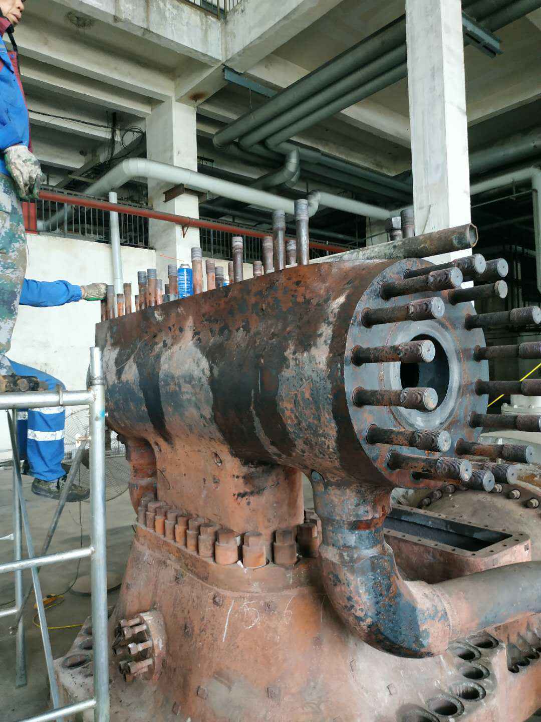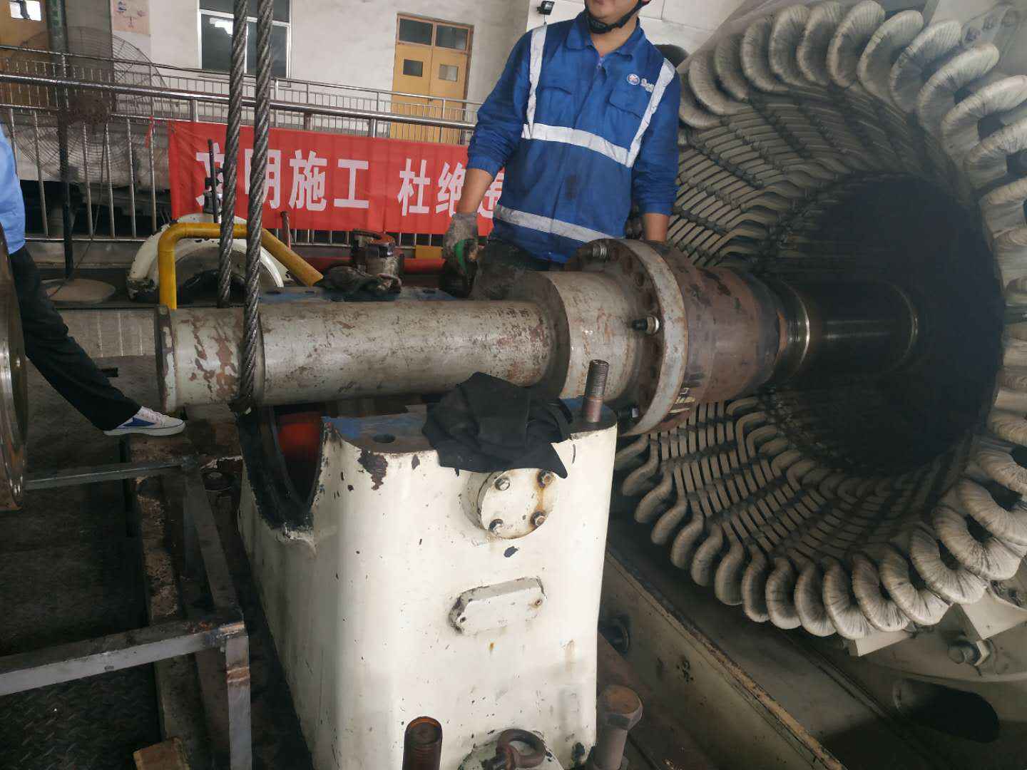 由沙巴首页-沙巴(中国)承建的山东海能化学有限责任公司机组B15MW背压式汽轮机组(原 C25抽汽凝汽式机组)大修工程现已完成凝结水泵、油站检修工作,发电机前后轴承座基础垫铁研磨工作,目前蒸汽室螺栓的拆卸工作及发电机定子与转子的清理工作陆续启动,下气缸吊隔板工作也在稳步进行中。